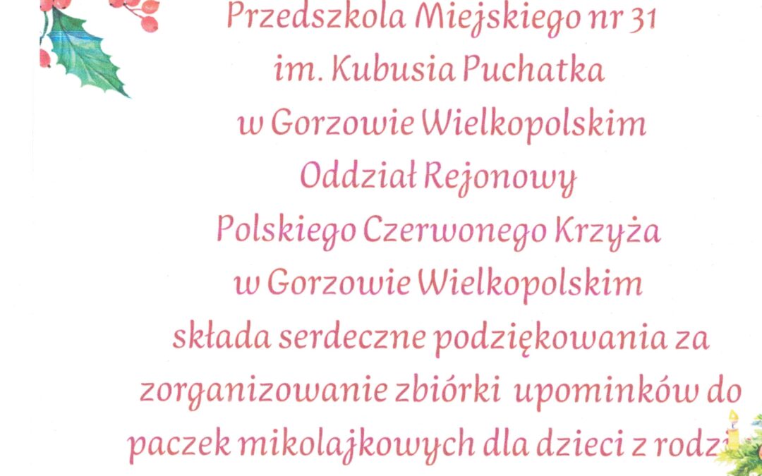 Dziękujemy z całego wszystkim osobom, które zaangażowały się w świąteczną zbiórkę PCK na rzecz najbardziej potrzebujących rodzin. Dzięki Waszej pomocy na twarzach wielu osób pojawił się uśmiech w te święta