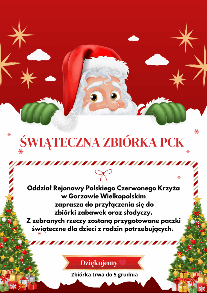 przypominamy o świątecznej zbiórce PCK. Do 5 grudnia trwa zbiórka zabawek i słodyczy.